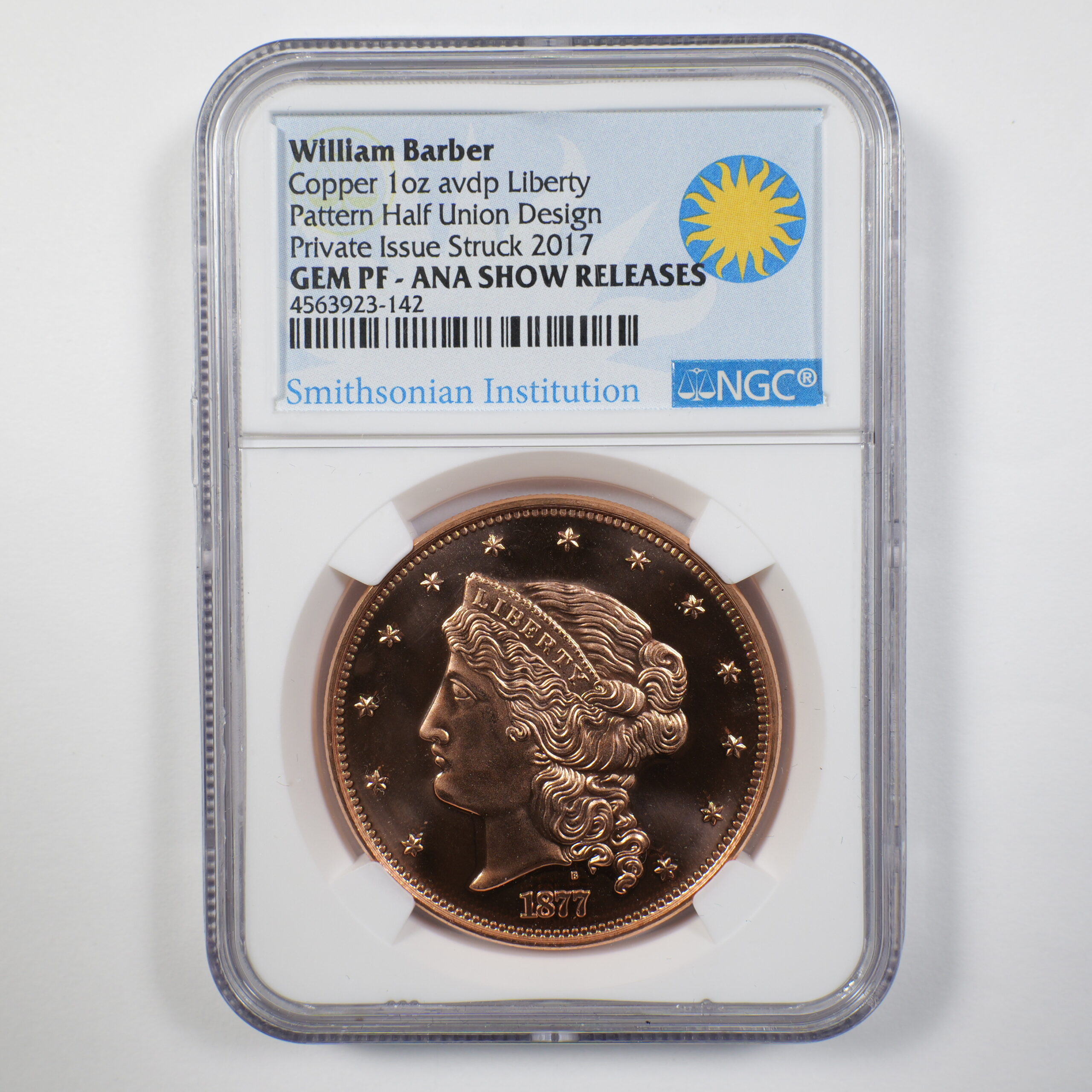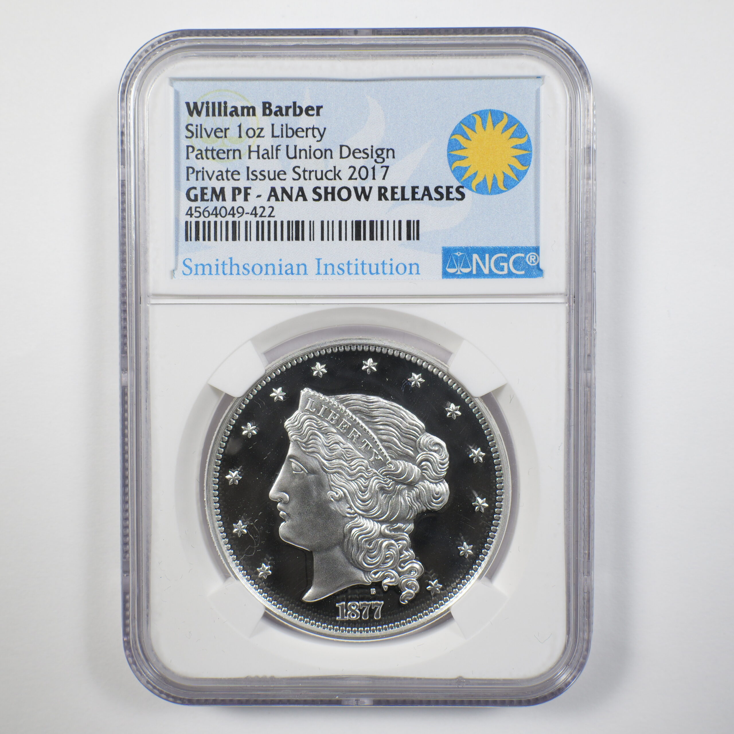 2017 William Barber 1oz Silver & 1oz Copper Pattern Half Union Design NGC ANA Release