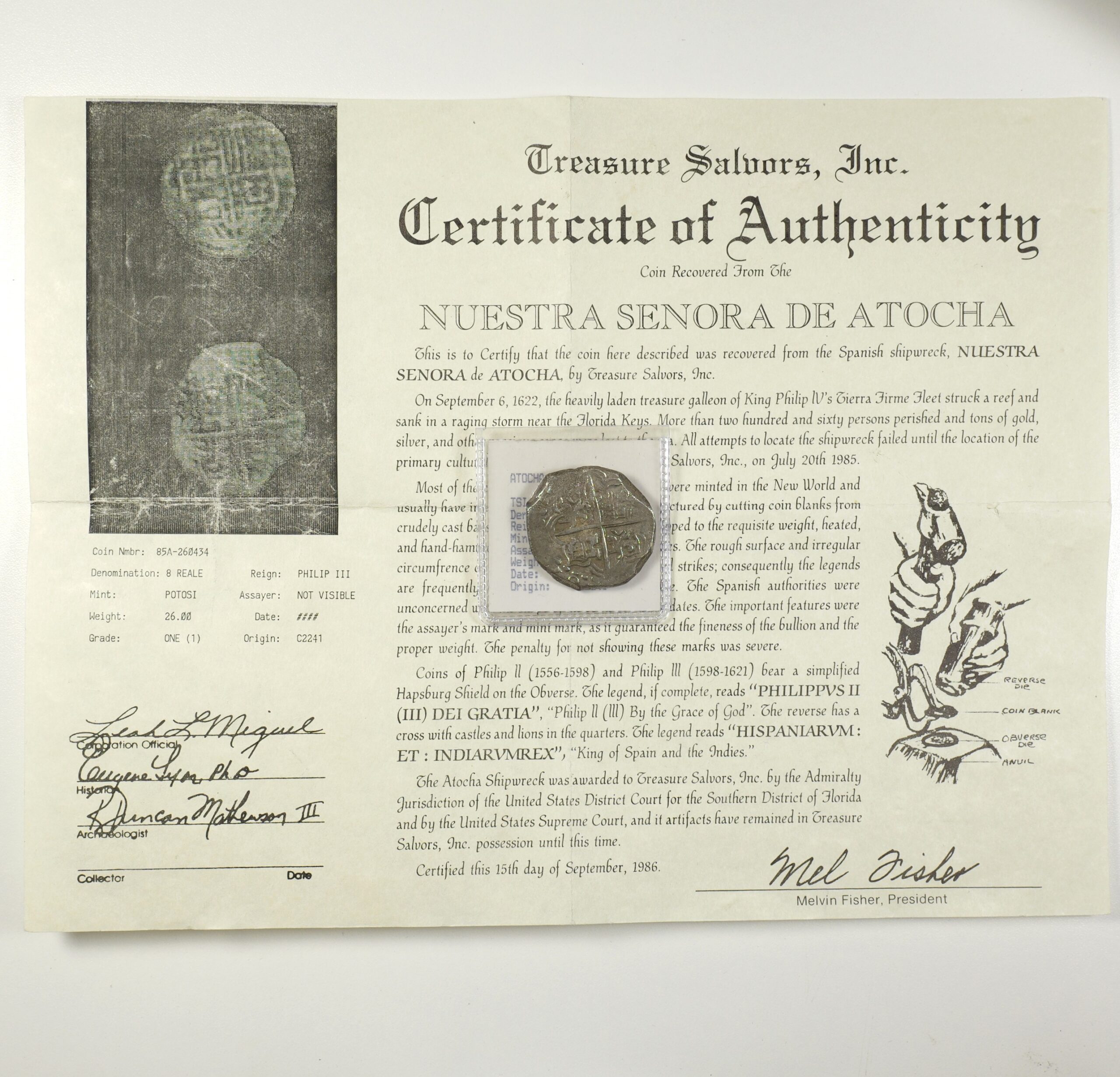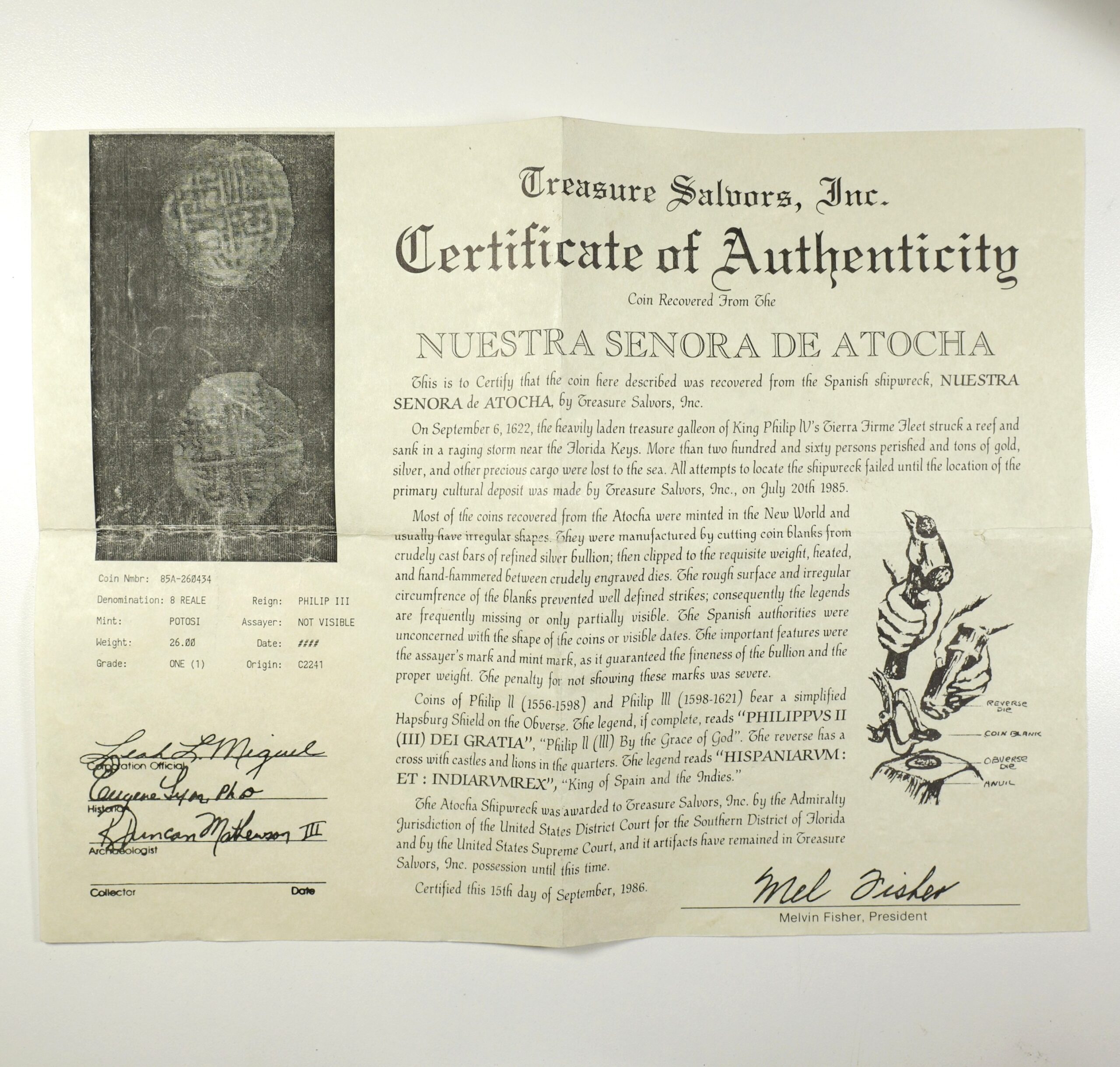 Atocha 8 Reales Shipwreck Coin w/ Mel Fisher COA