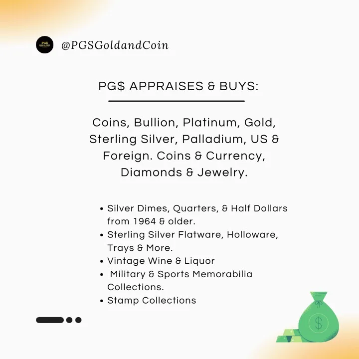Coins, Bullion, Platinum, Gold, Sterling Silver, Palladium, US & Foreign. Coins & Currency, Diamonds & Jewelry.